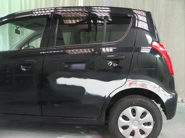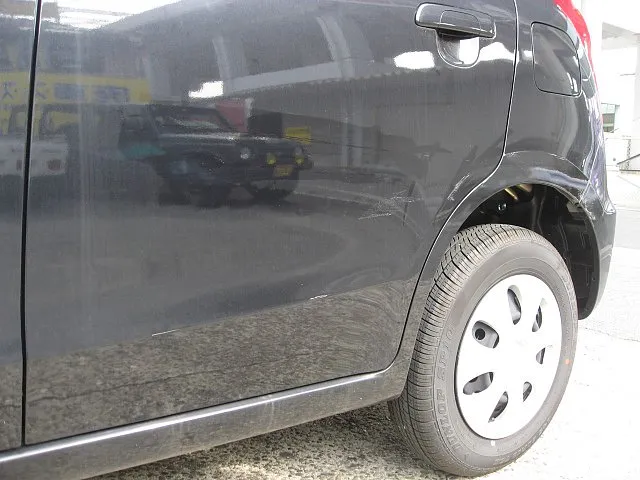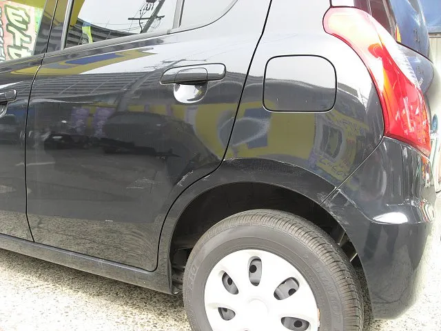 板金塗装修理実例 広島市 中区 キャロル(アルト) リアドア クオーターパネル リアバンパー へこみ キズ修理