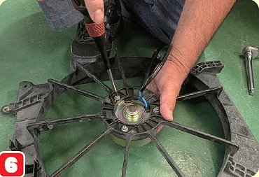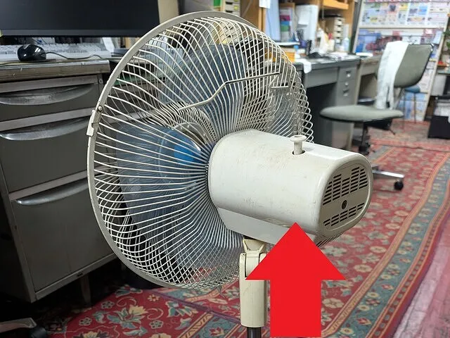 扇風機にも、ファンの後ろに「電動ファンモーター」が着いてますよ。こちらは回転速度を変えるためにデッカいモーターですが、車と同じ仕組み。調子悪ければ、叩けばヨロし!(笑)