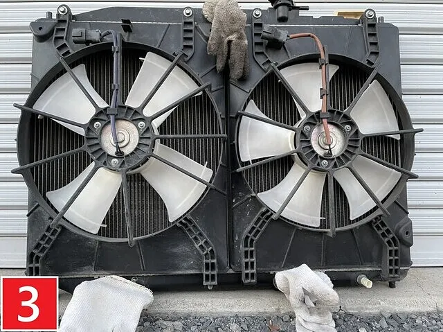 この車はファンが2個ですが、軽や小型車は1個だけです。