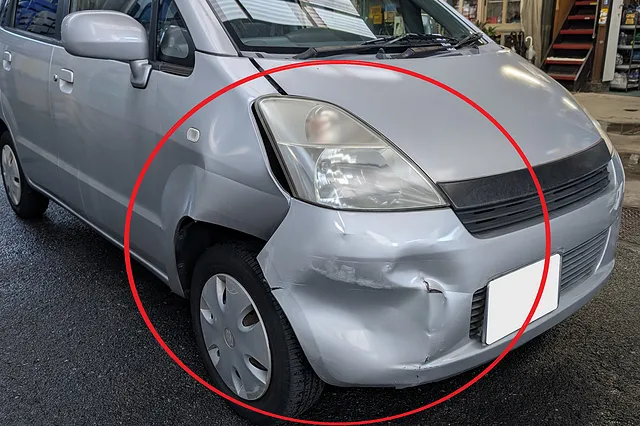 そばを走っていたクルマにぶつけられた、という100%被害事故。