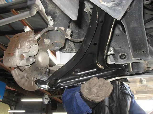 ロアアーム自体の交換はしませんが、ロアアームを外しての作業となります。