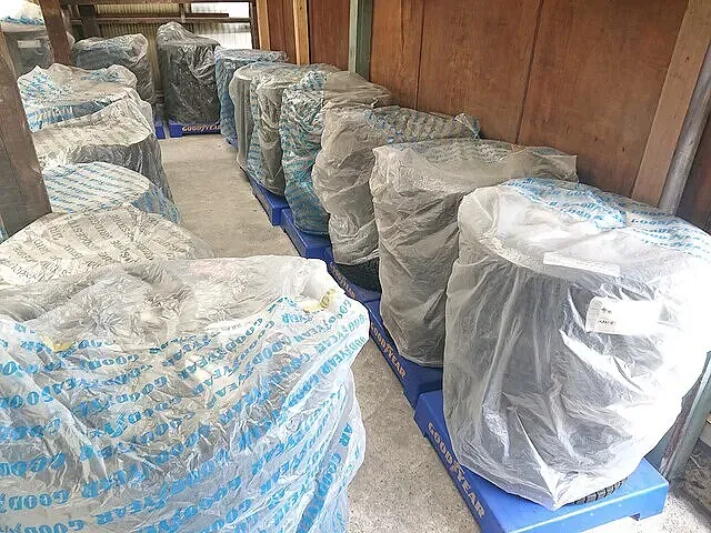 シーズン履き替えしたタイヤホイールのお預かり保管サービスをしています。